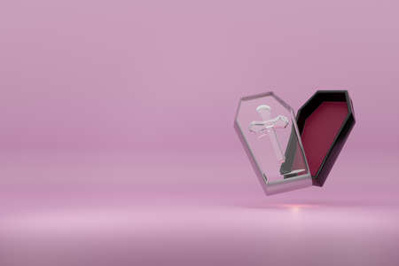 transparent glass coffin for happy halloween ,Concept 3d illustration or 3d render