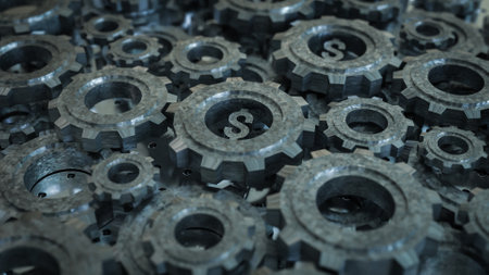 Dollar Symbol and Metal Gear for Business Concept 3D rendering.