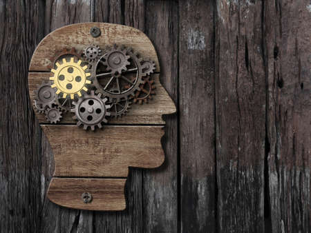 Creative human silhouette with colorful gears representing ideas and innovation, symbolizing the concept of cognitive processes and mental growth.