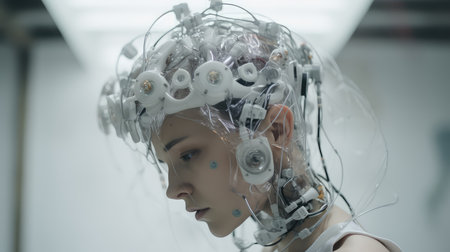 Image portraying a girl with electrodes on her head, representing brain stimulation and research