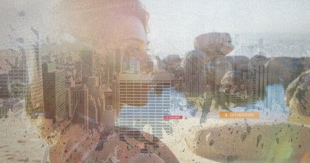 Image of data processing over cityscape. global business and digital interface concept digitally generated image.