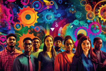 A vibrant tableau unfolds as people from diverse nationalities gather, representing a harmonious blend of cultures, backgrounds, and ethnicities, celebrating the beauty of multiculturalism and unity