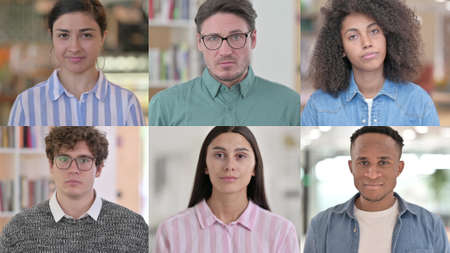 Collage of portraits of an ethnically diverse and mixed age group of focused business professionals