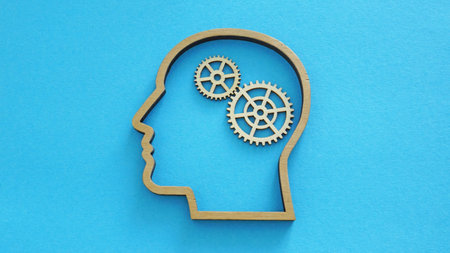 There are gears in the silhouette of a human head.