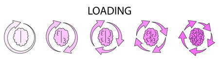 Brain loading icon. Arrow sign. Pink symbols. Creative idea. Cartoon art design. Vector illustration. Stock image.