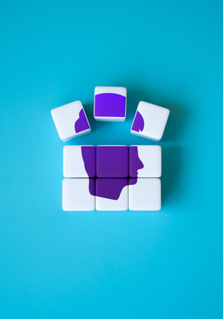 Mental Building Blocks: Brain Anatomy and Colorful Puzzle Tiles Representing Problem Solving