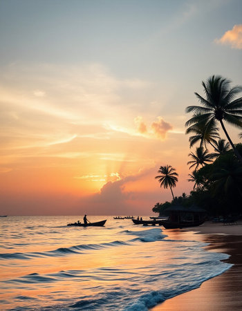 Beautiful sunset on the beach of the island of Sri Lanka.