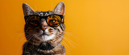 The Power of Visuals in Branding and Social Media Marketing: A Cat Wearing Sunglasses on a Dark Yellow Background. Concept Visual Branding, Social Media Marketing, Cat Photoshoot