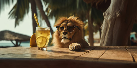 lion is on summer vacation at seaside resort and relaxing on summer beach