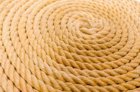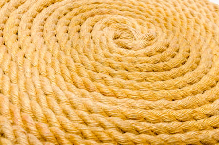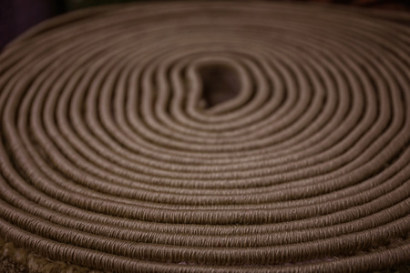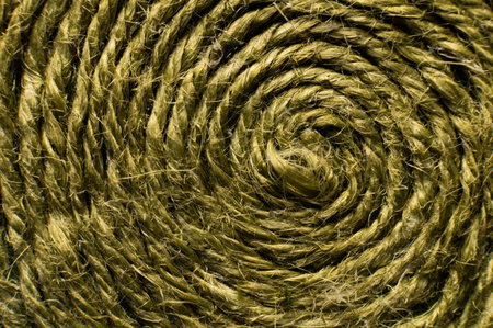 An extreme close-up view of the jute rope that is wound in a spiral. Generative AI.