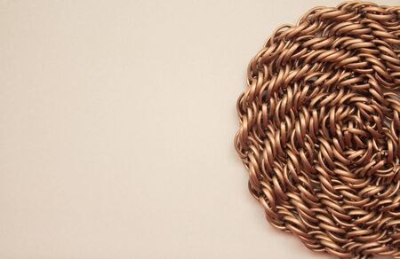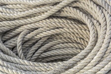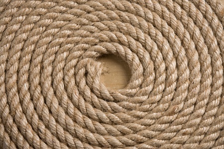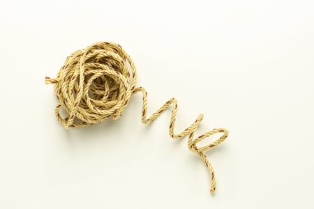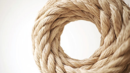 A beautifully arranged natural rope coil set against a neutral background, perfect for designs that evoke simplicity and rustic charm in photography projects.