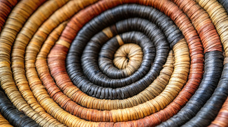 Explore the intricate details of natural fiber weaving in this stunning close-up photograph, showcasing the rich textures and patterns of handmade craftsmanship.