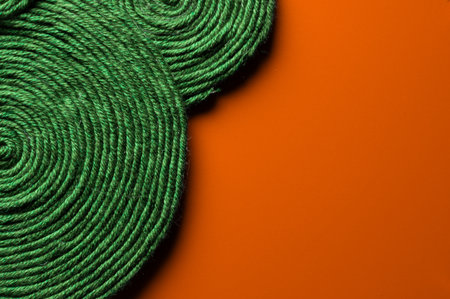 A vibrant orange rope lies perfectly coiled, a symbol of preparation and potential. Its neat spiral on a contrasting green background represents order, strength, and the readiness for an upcoming journey or challenge. This image evokes a sense of security, connection, and the focused precision required to achieve a goal.