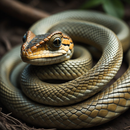 coiled snake with stunning patterns in natural habitat, created with generative ai