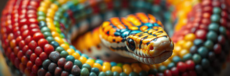 An AI generated illustration of a vibrant-colored snake in a field