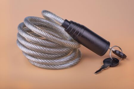 Bicycle lock with keys on a sandy orange background