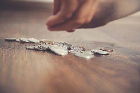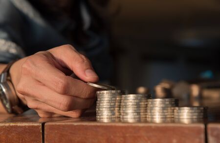 Close up coins on table background and saving money and business growth concept, finance and investment concept, macro coins