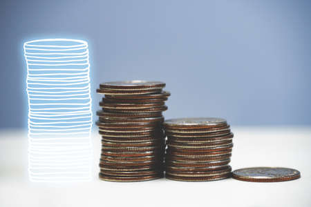 Coins money saving. Stock funding or money saving graph with coins. Background for business ideas and design. Chart for financial investment concept.