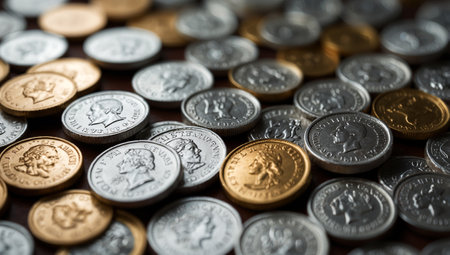 AI Generated. Background Scatter of Coins on a Dark Surface