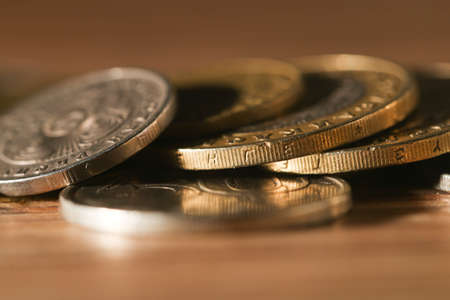 Close up of coins on table. Stock market financial concept.