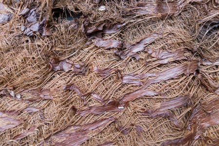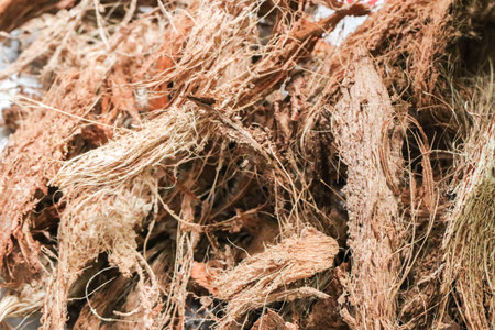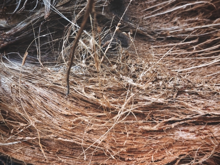 Close up of Coconut spathe fiber Dried coconuts peels