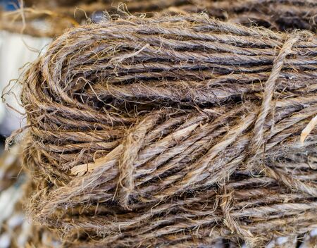Close up of fiber rope roll, shallow focus