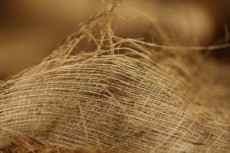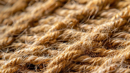 This close-up image captures the intricate texture of natural jute fiber, showcasing its rustic charm and eco-friendly appeal for design projects.