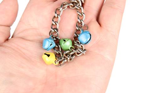 Necklace chain on white background, selective focus, macro