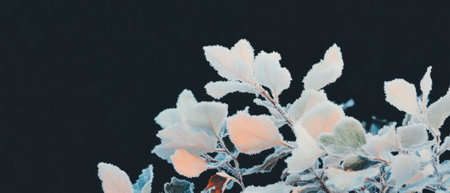Beautiful frost covers leaves on a winter morning with delicate ice formations