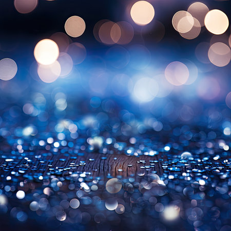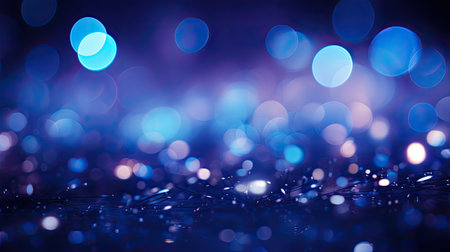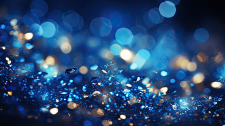 abstract patterns of softly blurred blue and silver glittering shine bulbs lights. Generative AI