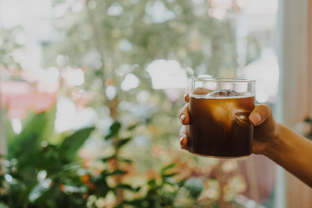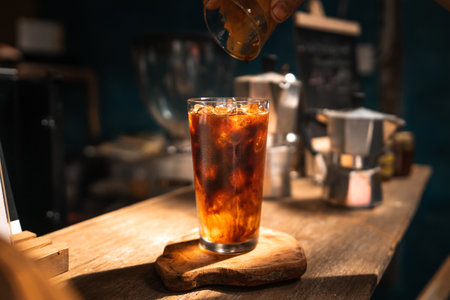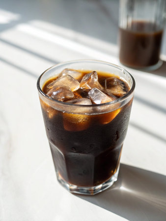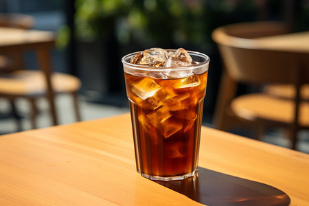 Americano with Fresh Ice Cubes Served in a Clear Glass on a Sunny Day in Cafe