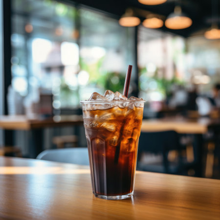 iced black coffee cup on table in coffee shop cafe