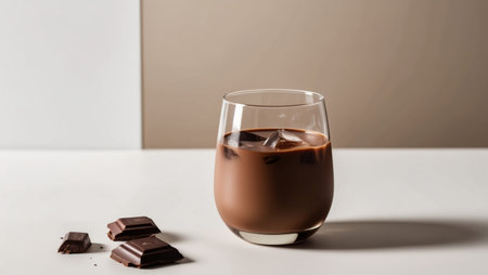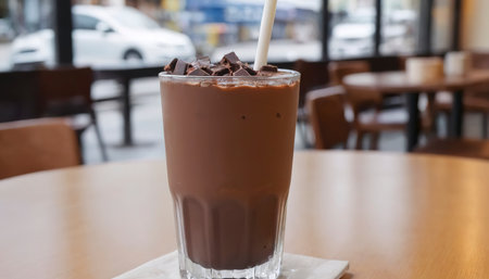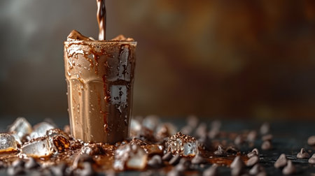 AI Generated. Chilled chocolate drink with ice and dark chocolate pieces