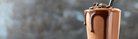 A chocolate milkshake with chocolate syrup dripping down the sides of the glass. --ar 7:2 --quality 2 --personalize ooj6fpf --v 6.1 Job ID: a30c07bf-1769-4fe4-9746-5e2a75052151