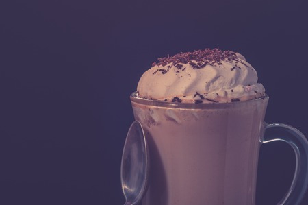 chocolate smoothie with whipped cream and chocolate chips, selective focus