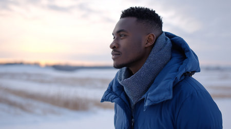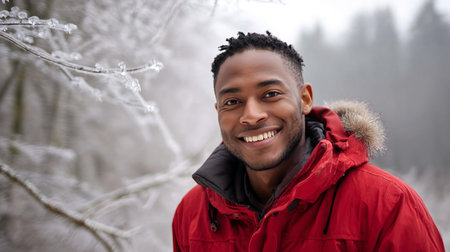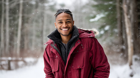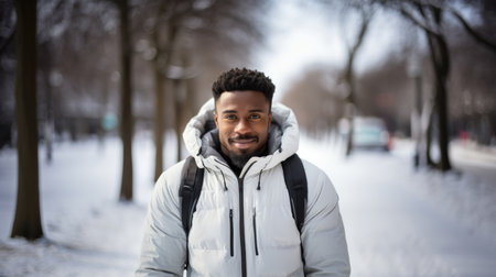 Portrait of young african american man standing outdoors in winter