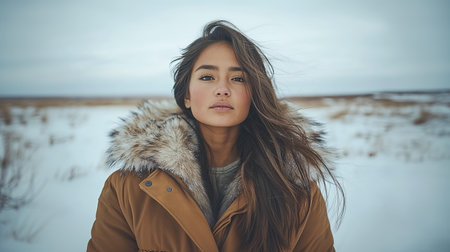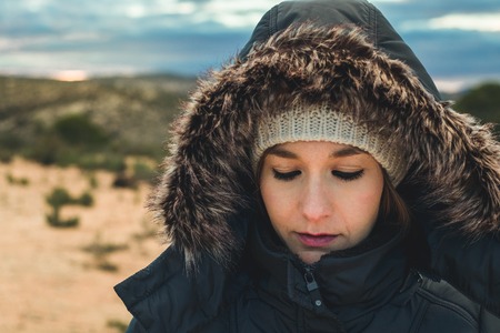Portrait of a woman in cold winter