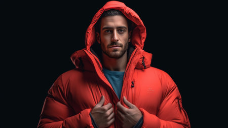 Portrait of a young man in a winter jacket on a dark background
