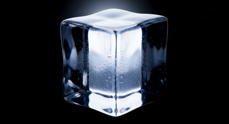 Icy square shape with cool reflection for drink and beverage advertising, abstract design element for refreshment, summer party or cool product display