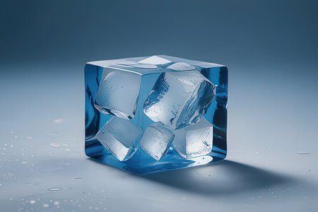 Close up of blue ice cube on a light background captured in stunning photography