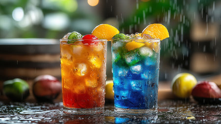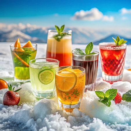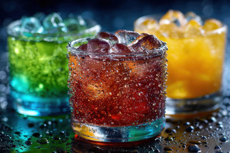 Refreshing colorful drinks with ice in vibrant hues for a summer delight