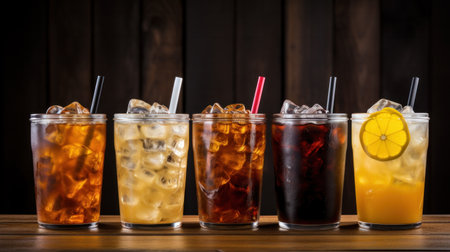 AI Generated. Summer Delight Colorful Drinks on Ice in Soft Glow