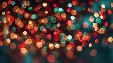 Vibrant bokeh lights in rich blues, oranges, and reds create a lively atmosphere, perfect for holiday celebrations. An artistic backdrop for any festive event.