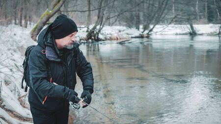 Fishing with spinning during winter. Fishing gear.