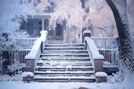 Snowy Staircases: Showcase the architectural beauty of snow-covered stairs, especially in historic areas. - Generative AI