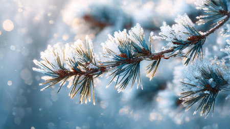 Snowy pine branch with frost