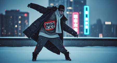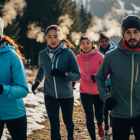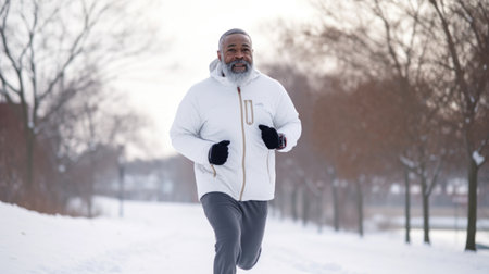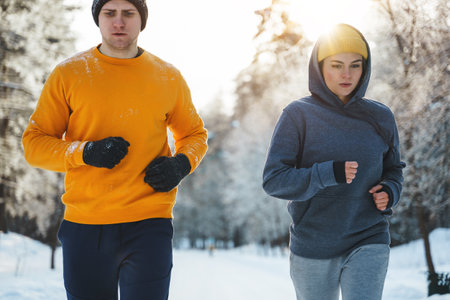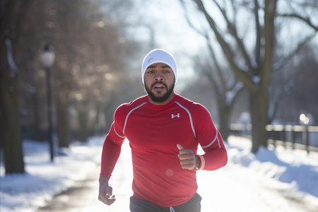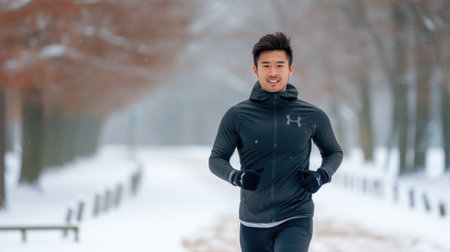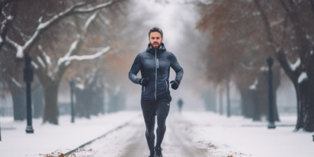 Winter fitness. person running in public park, actively involved in strength and health training.