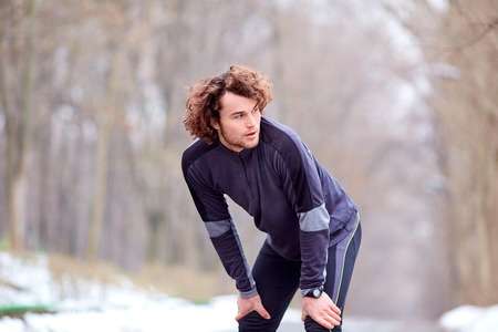 Handsome young man running and training on a cold winter day