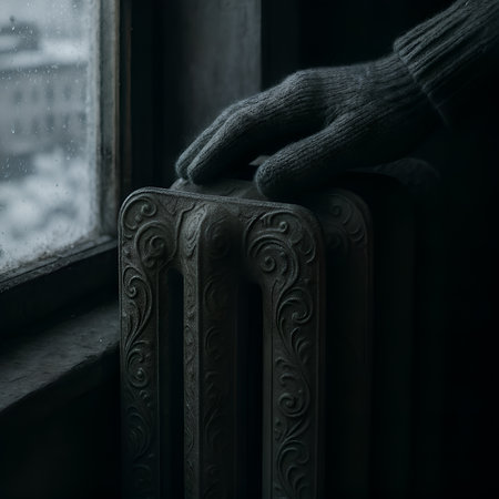 a child's hand placed on a warm radiator against a soft, light wall, symbolizing comfort and warmth in a home
