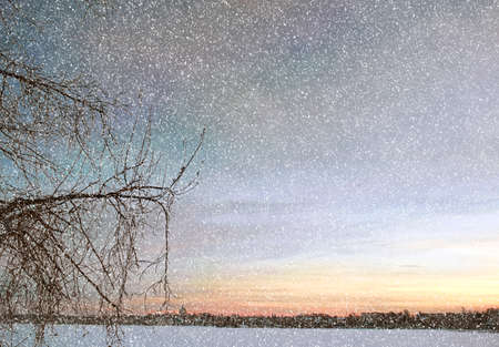 snow cover at dawn, winter decor.